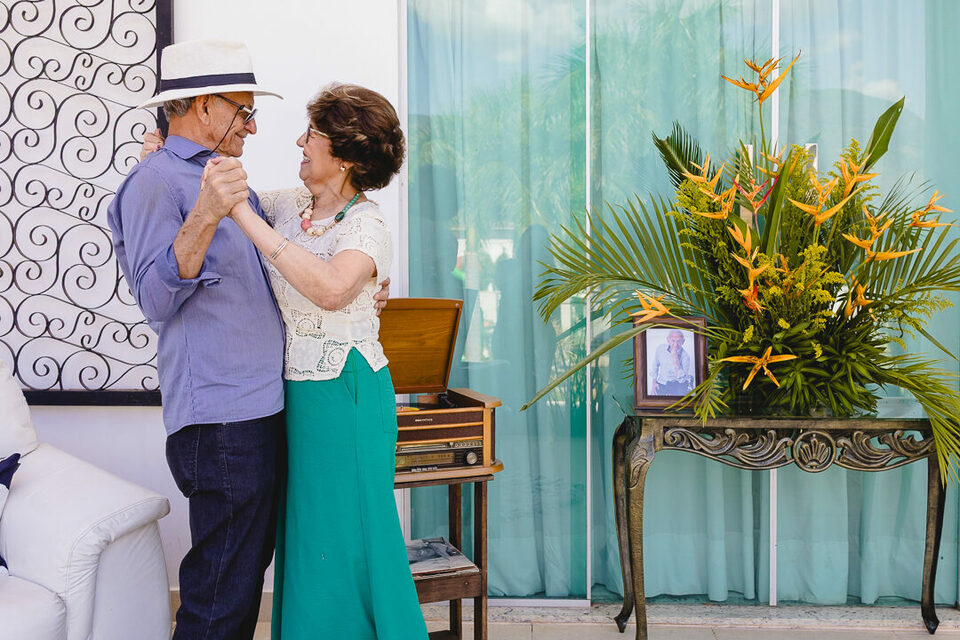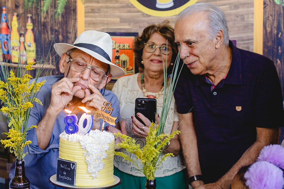 Teve música, teve homenagem, teve emoção… e teve pista de dança! Ao lado da dona Ceição, sua esposa, o Sr. Euflásio mostrou que amor, alegria e leveza não têm idade.