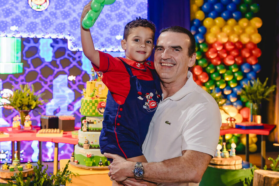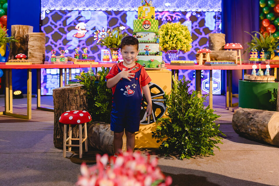 O aniversário de 5 anos do Benício foi uma verdadeira explosão de energia e alegria! Celebrado em um Jump, o tema escolhido – Mario Bross – trouxe muita cor e animação para o grande dia. 🎮🌟