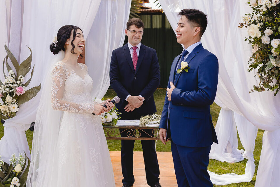 Numa manhã de sábado ensolarada, cercados pela natureza e pelas pessoas mais importantes de suas vidas, disseram “sim” em um casamento intimista, cheio de significado. A celebração aconteceu em uma chácara, com leveza, emoção e a certeza de que o amor não conhece distâncias, culturas ou barreiras.