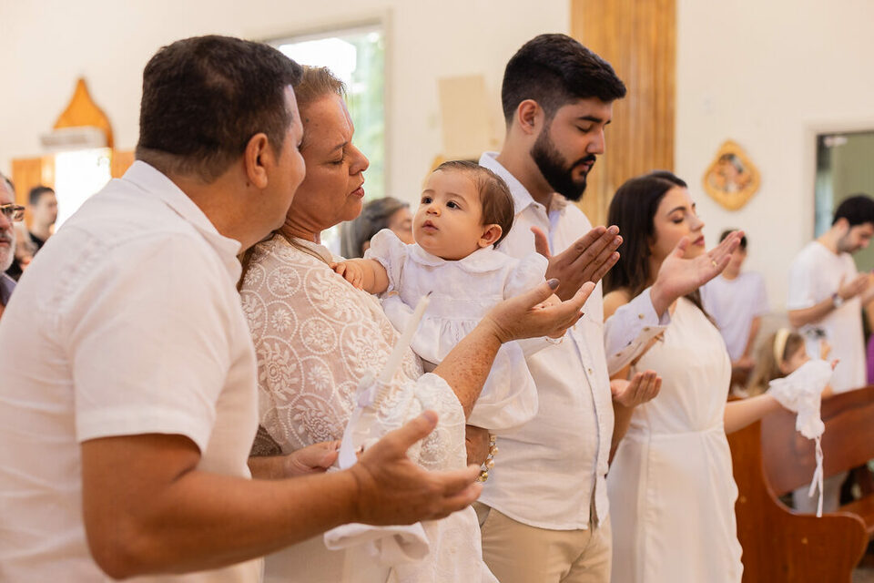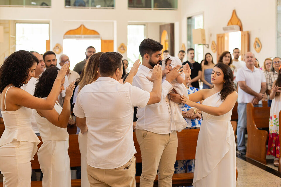 A cerimônia foi repleta de emoção, com olhares de orgulho e gratidão, que se refletiram em cada detalhe – desde a chegada da pequena até o momento da unção, em que ela recebeu as bênçãos de Deus. Uma verdadeira celebração da vida e da fé, que ficará guardada para sempre no coração de todos que participaram. 🌿✨